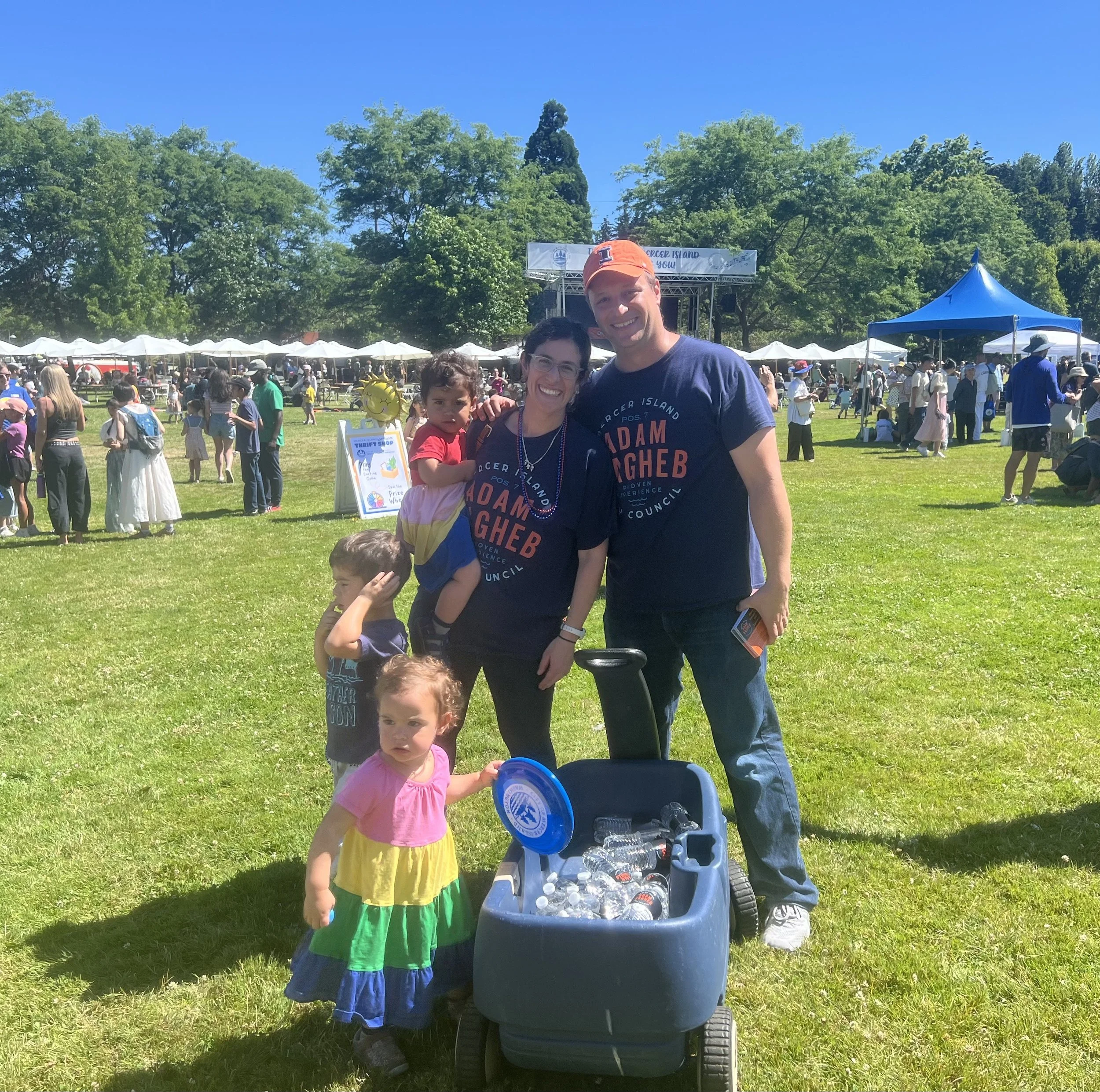 The whole family meeting people in the community and handing out water at Summer Celebration